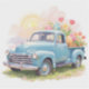 Featuring a classic retro pickup truck overflowing with giant colorful Easter eggs and blooming pink and yellow tulips, this design captures the joy of the season. The soft pastel colors and sunny background make it perfect for farmhouse-style home decor, cute Easter greeting cards, or unique holiday gifts.