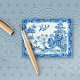 In 1898 an English gentleman sent Christmas and New Year's greeting to family, friends and acquaintances with a small folded card. The front was graced with a classic blue willow image and his gold engraved monogram. The inside conveyed his friendly message and the date. For our purposes, the monogram has been removed and we have a charming oriental drawing in classic blue. It's a wonderful design for home decor, apparel, correspondence and personal accessories.