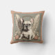Dog lovers and fans of French bulldogs will love this dog friendly home accent. As a memorial keepsake or a tribute to the angel your French Bulldog is, this cute personalised throw pillow adds charm to any space. The vintage styling will blend with most decor themes. A blush lace border over dark mint green is pure french charm. More angelic dog breeds available.
