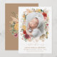 This elegant design features various watercolor florals mixed with greenery foliage and airy pampas grass in various shades of red, blush, yellow and green. Personalise the card with your baby's details and if you want to further re-arrange the style and placement of the text, please press the "Click to customise further" button.