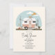 Illustration of a 70s inspired vintage blush pink camper decorated with tassels, florals, macrame, pampas, and potted plants.
