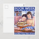 This postcard is a reproduction of a vintage library literacy poster for Book Week showing a girl and boy reading. It says, "Books tell the story."