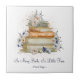 Add a bookish touch to any space! This ceramic tile features a stack of books, beige and blue flowers, and a custom book quote—great for book lover gifts!