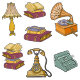 A pretty vintage set of books, reading and writing supplies. Great for junk journals or planners.
