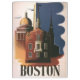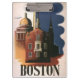 Vintage illustration United States of America travel poster from Boston, Massachusetts featuring the Old State House (foreground) and the New State House (background) which sits at the top of Beacon Hill, overlooking Boston Common. The Old North Church is on the right, which is the location from which Paul Revere's famous midnight ride started, his "One if by land, and two if by sea" signal warning of the British invasion.