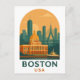 Capture the charm of vintage Boston with this retro travel art postcard, featuring a beautifully illustrated skyline of the city. 🇺🇸✨