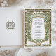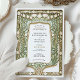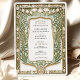 This exquisite Art Nouveau wedding invitation features a lush botanical frame adorned with delicate flowers, vines, and gold-accented foliage, creating a romantic and timeless aesthetic. The soft green and cream tones, paired with intricate floral detailing, give this design a vintage yet elegant appeal, perfect for nature-inspired or classic weddings. The refined typography blends seamlessly with the ornate frame, elevating the overall sophistication of the card. The back of the invitation showcases a minimalist monogram emblem with a stylised floral motif, adding a personal and artistic touch. Ideal for couples looking for an elegant, vintage-inspired wedding theme.