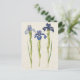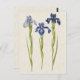 Postcard with a vintage illustration of blue irises from The Gottorfer Codex, 1649-1659. Digitally cleaned and enhanced to resemble a watercolor on a light tan antique texture background.