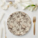Vintage botanical floral pattern paper plate featuring soft cream and beige flowers with detailed stems, leaves, and delicate script accents on an aged neutral background. Elegant and timeless with a rustic floral aesthetic, this seamless design is ideal for cottagecore lovers, garden enthusiasts, vintage style fans, and botanical art admirers.