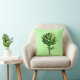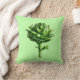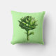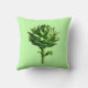 Throw pillow in a vintage botanical illustration of a globe artichoke, digitally enhanced and coloured, on a light celery green background