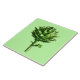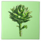 Ceramic tile in a vintage botanical illustration of a globe artichoke, digitally enhanced and coloured, on a light celery green background