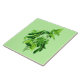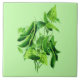 Ceramic tile in a vintage botanical illustration of a bean vine with leaves, digitally enhanced and coloured, on a light celery green background
