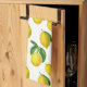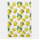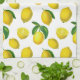 Tea towel in a print of scattered lemons and leaves based on elements of vintage botanical art, digitally enhanced