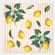 Vintage Botanical Lemons Pink Stripes Wallpaper