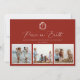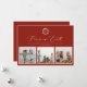 Peace on Earth, Vintage botanical monogram frame, 3 photo holiday card in festive red.