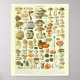 Reproduction of famous Adolphe Millot mushroom illustration from 1909 titled 'Champignons'