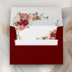 Elegant envelope featuring a beautiful flowers on the inside and dark red colour on the outside.