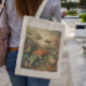 Vintage botanical scene of hummingbirdsand flowers tote bag