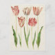 Postcard with a vintage illustration of red, pink, and white tulips from The Gottofer Codex, 1649-1659. Digitally cleaned and enhanced to resemble a watercolor on a light tan antique texture background.