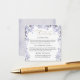 This elegant wedding enclosure card is designed with delicate watercolor florals and soft botanical leaves in shades of purple and grey, creating a timeless and vintage-inspired look. Perfectly matching the wedding invitation suite, this enclosure card provides important details for your guests in an organised and stylish way. The layout includes sections for the reception, accommodation, and more details such as a wedding website, ensuring that all the essential information is clearly presented. With its old-style watercolor artwork, romantic floral border, and refined typography, this wedding enclosure card adds both function and beauty to your stationery collection.