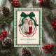Vintage Bow Green Stripe Christmas Photo Holiday Card