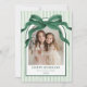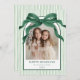 Vintage Bow Green Stripe Christmas Photo Holiday Card