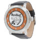 Vintage Bowling Watch features a black and white design of a man bowling at his favourite bowling alley.