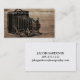 These handsome business cards are perfect for photographers, camera stores, antique dealers and more. Features an antique box & bellows style camera silhouette on a wood grain background.