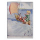 A vintage children's book illustration by Honour C. Appleton titled "The Fairy Boat" depicting a young boy and his dog sailing in a small sailboat. The boy eats strawberry jam straight out of the jar while the dog looks on longingly. Honour C. Appleton (1879-1951) was an English illustrator and artist who illustrated over 150 books in her career, beginning with children’s books and moving to literary classics. This card is blank inside for your own message.