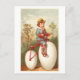 This postcard is a reproduction of a vintage Victorian trade card showing a boy riding a bicycle that has eggs for wheels. Which is obviously a terrible idea, so why?