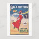 This postcard is a reproduction of a vintage advertisement for Brampton roller skates, made in Birmingham, UK.
