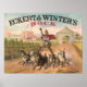 Vintage brewery advertisement for Eckert & Winter's Bock, New York. A king stands on the back of running goats with long horns. The king wears a crown, cape and royal tunic while carrying a full mug of beer aloft. In the background a wagon loaded with barrels of beer leaves the brewery. From an original 19th century (1871) lithograph by Hoen. All Rights Reserved © 2014 padre art