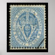 Beautiful blue and white lattice patterned old three pence postage stamp featuring ornate crown and V for Victoria from our British Columbia Collection