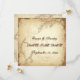 Vintage brown beige scroll leaf wedding Save the Date announcement, featuring elegant leaf scrolls in brown, on brown and beige grunge background.