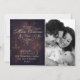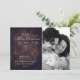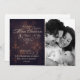 This vintage chocolate brown photo card is perfect for sending out your Christmas notes with elegance and flair, featuring "Wishing you a Merry Christmas & a Happy New Year, with love from [your family name]" in ornate swirly script, with snowflakes floating in the background.