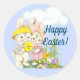 Vintage Bunnies & Flowers Happy Easter Classic Round Sticker
