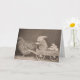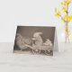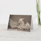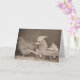 A vintage photograph of a funny scene with a rabbit driving a cart hitched up to a hen as they deliver the hen's eggs. Card is blank inside for your handwritten note.