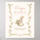Vintage Bunny Baby Shower Diaper Raffle Sign, featuring a cute little bunny, and a whimsical watercolor greenery frame design with pink floral elements.