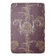 This image features a classic damask wallpaper design with intricate baroque-style floral motifs in gold and ivory tones. The background is a deep burgundy colour, adding richness and sophistication. The symmetrical flourishes and scrolling patterns evoke a timeless, vintage elegance suitable for upscale interiors or decorative projects.