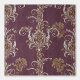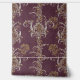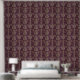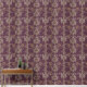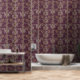 This image features a classic damask wallpaper design with intricate baroque-style floral motifs in gold and ivory tones. The background is a deep burgundy colour, adding richness and sophistication. The symmetrical flourishes and scrolling patterns evoke a timeless, vintage elegance suitable for upscale interiors or decorative projects.