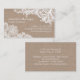 I looked all over for a unique business card for my vintage design business and was so excited when I found this burlap and lace card. The cards fit my design esthetic perfectly and I frequently receive compliments on the cards when I hand them out to my clients at vendor shows. I reordered them and will continue to use this card for years to come. Better than expected - perfect!