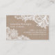 The design of the vintage burlap lace is perfect for the kind of work I do. I do a lot of carving which resembles the lace design so this card is perfect to represent mu business. I receive many compliments on this card. This is my second reorder and I will continue to use it as long as you carry this design. The printing was very nice.