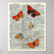 Vintage Butterfly Botanical #11 on Dictionary Page Poster
