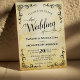 This elegant wedding invitation features a vintage design with black calligraphy script, a lacy filigree border, and a parchment background. The design is fancy, and formal, but modern enough for any wedding.