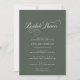 Simple and elegant bridal shower invitations featuring the words "Bridal Shower" in calligraphy writing. Dark, forest green colour for the bride-to-be that likes a moody colour palette.