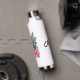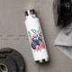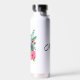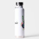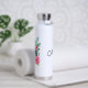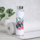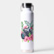 Pink flowers, green foliage and vintage camera personalised water bottle.