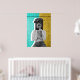Elevate your space with this striking black-and-white photo collage. A girl drinks juice with a vintage camera for a head, set against a dynamic blue-yellow backdrop. This creative composition sparks imagination, reminding you to see life through a unique lens every day.