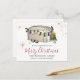 A cute vintage camper trailer Christmas greeting from a family on the road for the holidays.