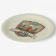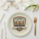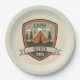 These personalised paper plates feature a scout-style badge with a cosy tent among tall pine trees. The shield-shaped badge showcases a customised name banner. With earthy retro hues, this adventure-ready design is perfect for kids' camping trips, birthdays, or summer camp keepsakes.