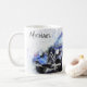 This abstract vintage car graphic coffee mug with vibrant colours and style will draw everyone's attention when you stop for elevenses. The text can be changed.